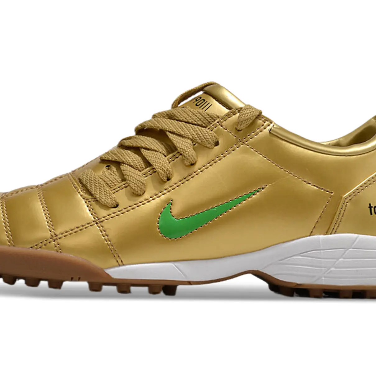 Para quem gosta de se destacar dentro e fora das quatro linhas. A Nike Total 90 Dourado e Verde chega com um visual imponente e nostálgico, resgatando a era de ouro dos boleiros raiz com um toque moderno.