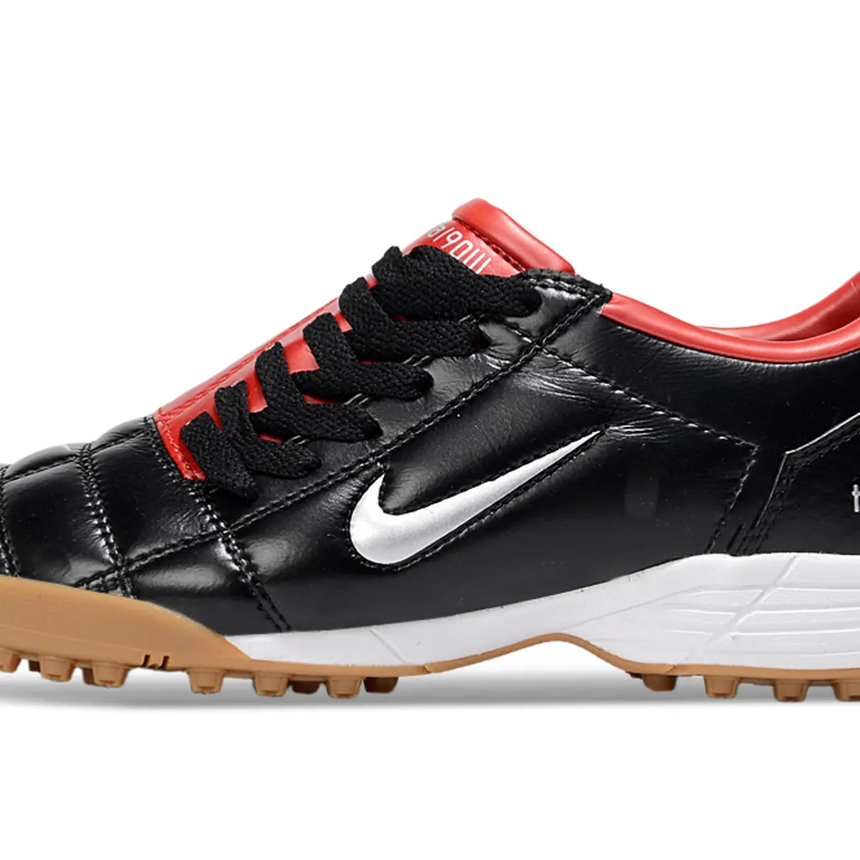 A lendária Nike Total 90 reaparece em uma edição imponente em preto e vermelho, combinando nostalgia e presença dentro de campo. Um clássico respeitado que continua conquistando boleiros geração após geração.