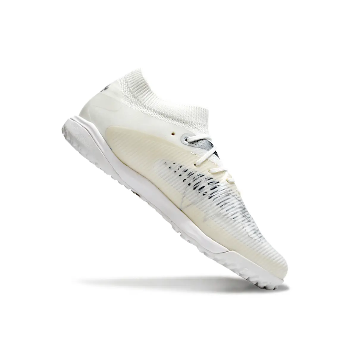 Seu cabedal é construído com material FUZIONFIT360, que combina malha elástica com suporte interno para um encaixe firme e flexível, mesmo sem cadarços apertados. A textura em relevo na parte frontal oferece mais grip e sensibilidade no toque de bola. Já o solado TF (Turf) é feito para gramados sintéticos, garantindo tração estável e segurança nos movimentos rápidos e imprevisíveis.