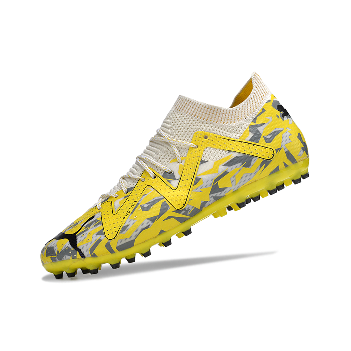A chuteira Puma Future Ultimate MG do "Voltage Pack", na coloração "Amarela e Cinza", é uma opção moderna e inovadora para jogadores de society. Esta chuteira é projetada para oferecer desempenho de alto nível em campos de grama sintética (society) e pode apresentar as seguintes características: