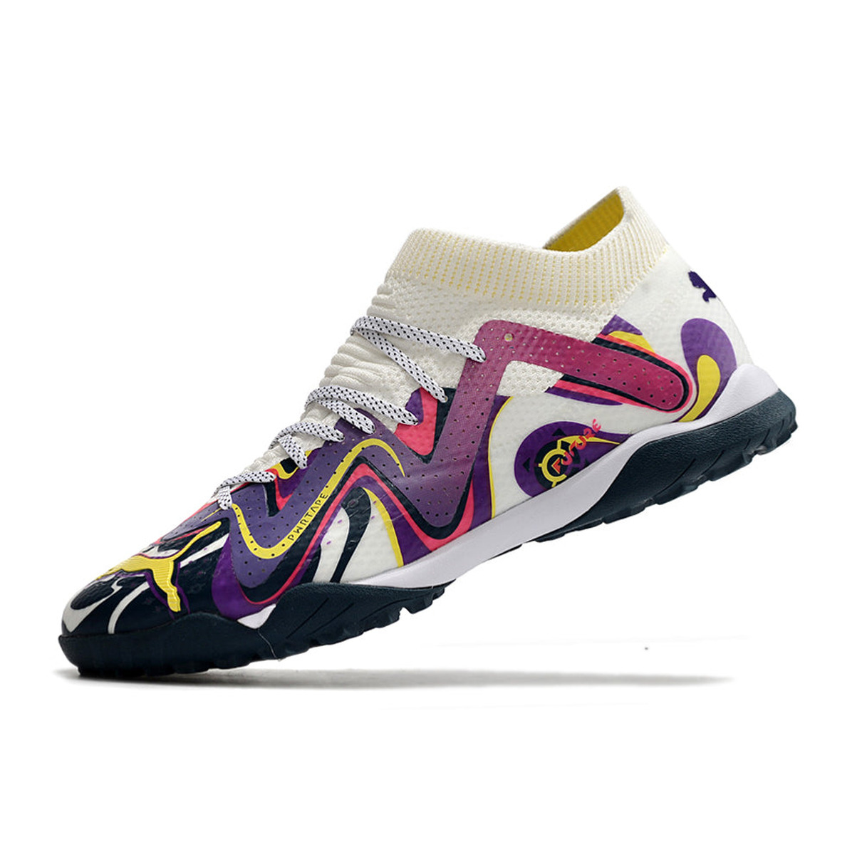Chuteira de Society Puma Future Ultimate TF Branca e Roxa "Creativy Pack"