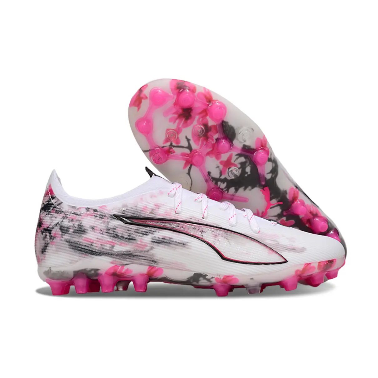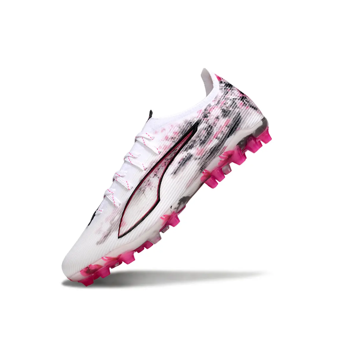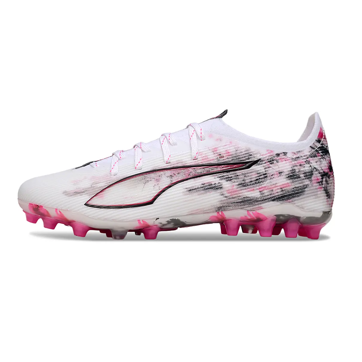 Chuteira Society Puma Ultra 5 Ultimate MG – Branco, Rosa e Preto