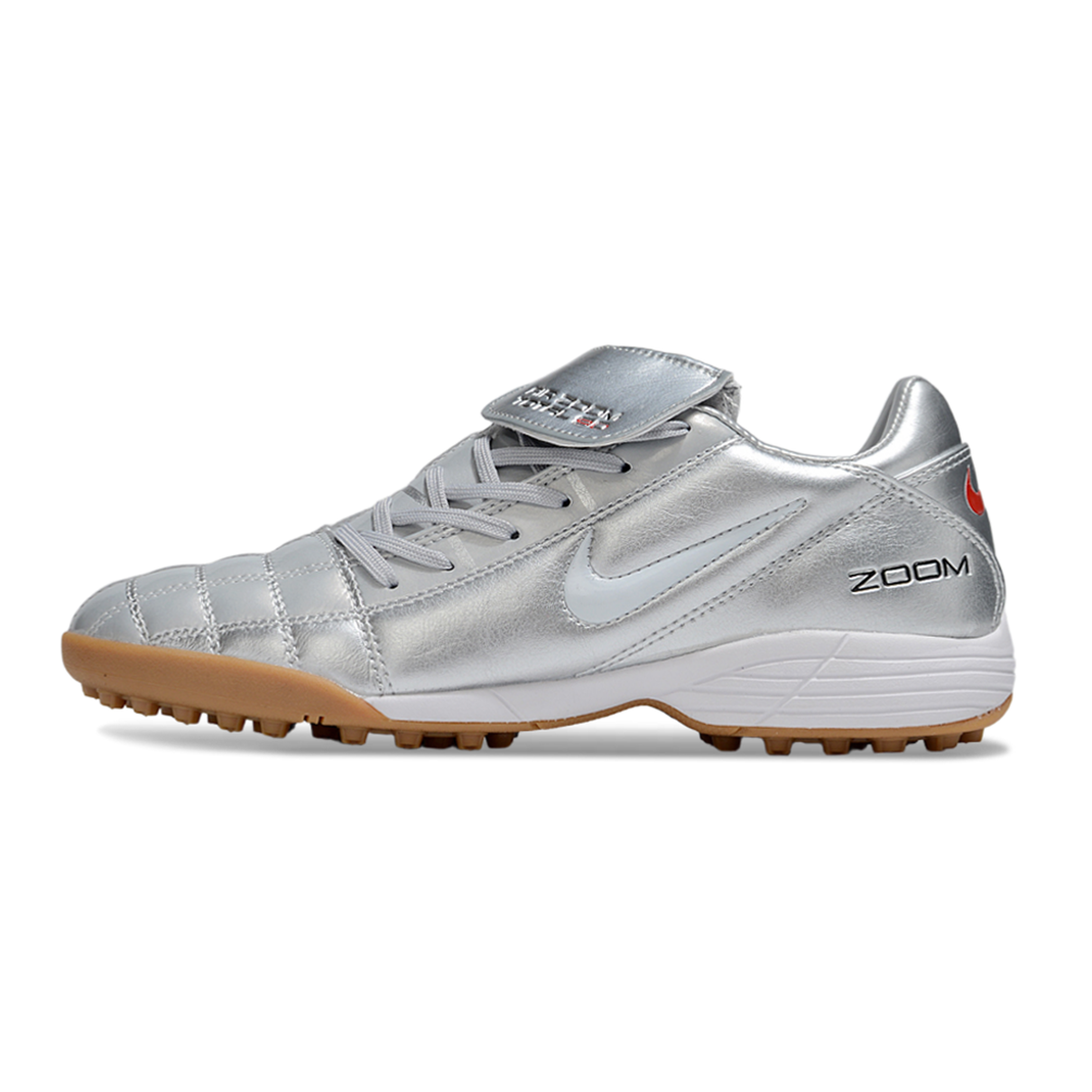 A clássica Nike Total 90 retorna com força total em uma versão atualizada para o society, agora com um visual prata metálico que impõe respeito desde o primeiro toque. Combinando tradição e inovação, essa chuteira é perfeita para quem joga com intensidade, mira certeira e não passa despercebido.