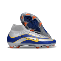 A Nike Air Zoom Mercurial Superfly 10 Elite FG – Prata, Azul e Amarelo combina a mais alta tecnologia da Nike com um visual ousado e futurista. Feita para jogadores que vivem no limite da velocidade, essa chuteira entrega amortecimento responsivo, tração agressiva e ajuste perfeito, tudo isso em um design que brilha em campo.