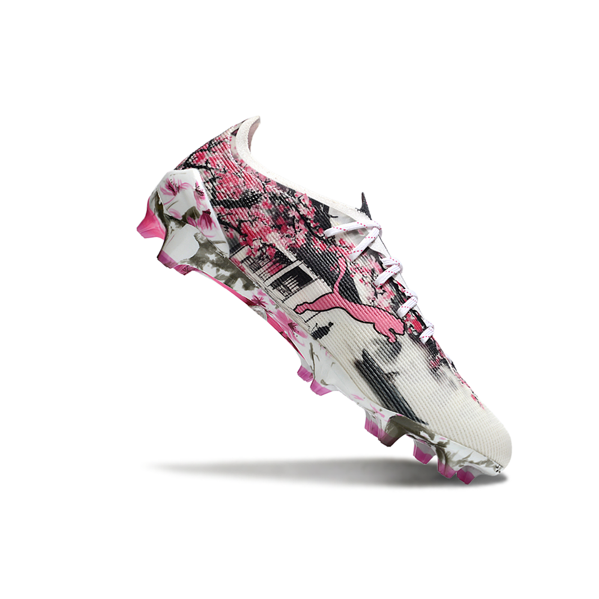 A Puma Ultra 5 Ultimate FG – Branco, Rosa e Preto é feita para quem quer ser o jogador mais rápido em campo. Leve, explosiva e com um visual moderno, ela é equipada com as tecnologias mais avançadas da Puma para oferecer velocidade máxima, tração agressiva e ajuste firme, tudo isso com muito estilo.
