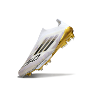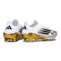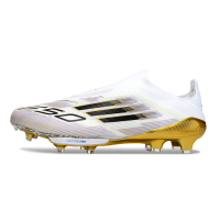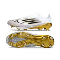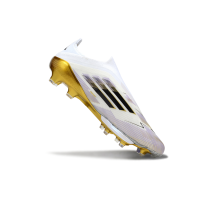 A Adidas F50+ LL FG Branco e Dourado é uma fusão de luxo e performance. Com design imponente e acabamento metálico dourado, essa chuteira foi feita para jogadores que querem se destacar não só pelo talento, mas também pelo visual.