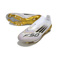 Chuteira Campo Adidas F50+ LL FG – Branco e Dourado