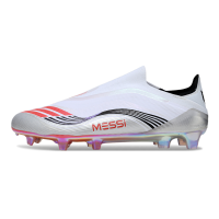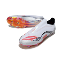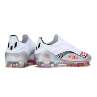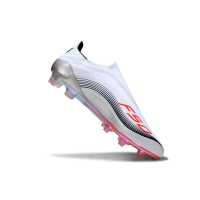 Nesta versão Laceless (sem cadarços), o cabedal limpo proporciona controle absoluto da bola, enquanto o design moderno mistura tons de branco, cinza e laranja, destacando a elegância e agressividade de quem domina o jogo com classe.