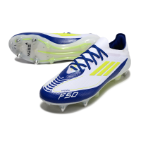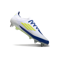 Chuteira Campo Adidas F50 Ponta de Aluminio Branco, Amarelo e Azul