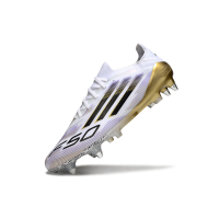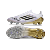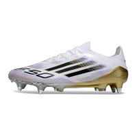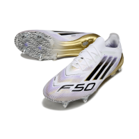 Chuteira Campo Adidas F50 Ponta de Aluminio Branco, Dourado e Roxo