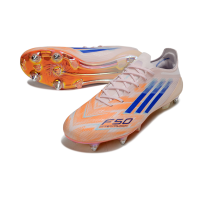 Chuteira Campo Adidas F50 Ponta de Aluminio Rosa, Laranja e Azul