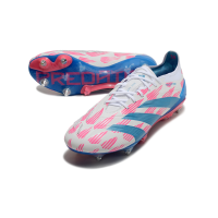 Chuteira Campo Adidas Predator Elite Ponta de Aluminio Branco, Rosa e Azul