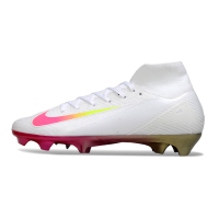 Chuteira Campo Nike Air Zoom Mercurial Superfly 10 Elite FG Branca, Rosa e Amarelo
