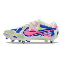 Chuteira Campo Nike Air Zoom Mercurial Vapor 15 Elite Trava Mista Branco, Azul e Rosa