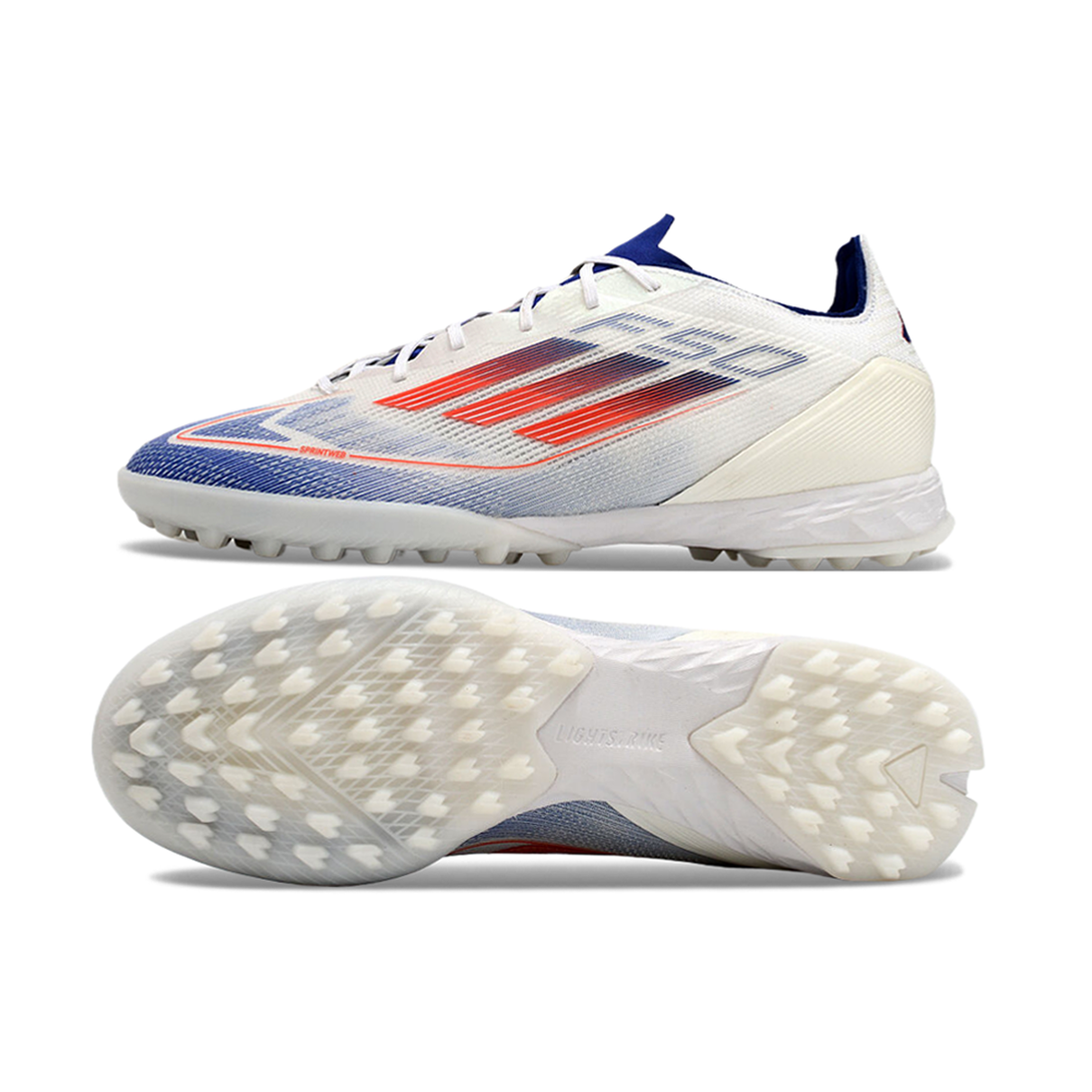 Chuteira Society Adidas F50 TF Branca, Azul e Vermelha