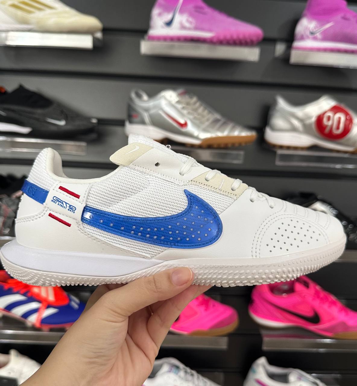 Chuteira Futsal Nike StreetGato IC Branco e Azul - Pronta Entrega