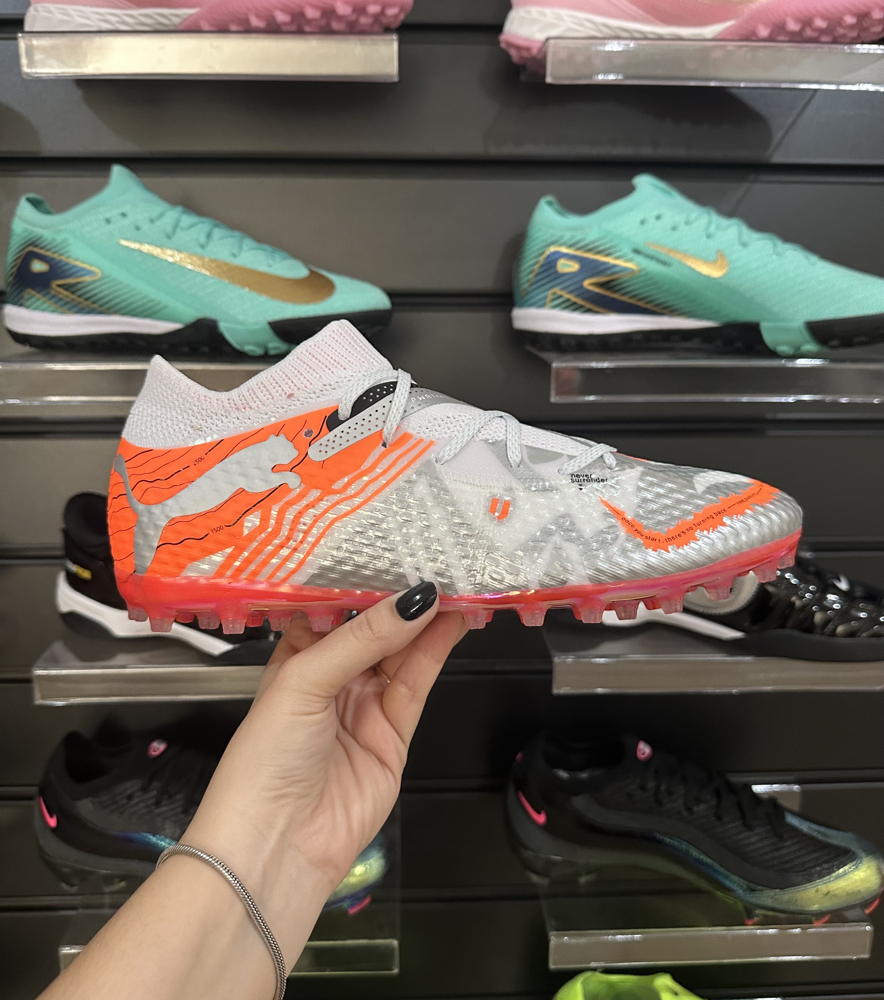 Chuteira Society Puma Future 7 MG Cinza e Laranja - Pronta Entrega