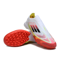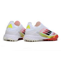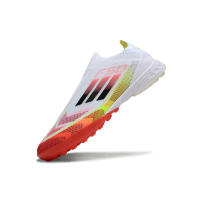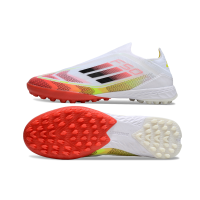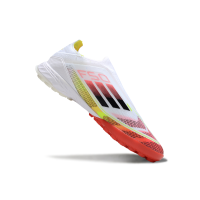 Chuteira Society Adidas F50+ TF Branco, Vermelho e Amarelo