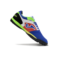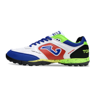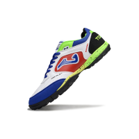 Chuteira Society Joma Top Flex TF Branco, Azul, Verde e Vermelho