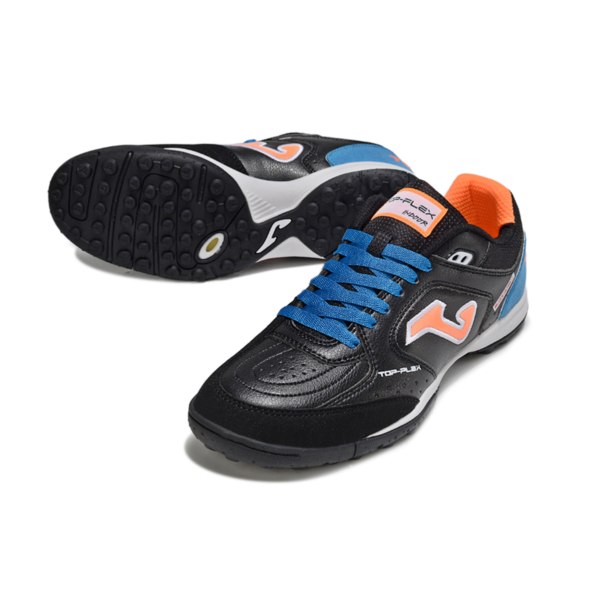 Chuteira Society Joma Top Flex TF Preto, Azul e Laranja