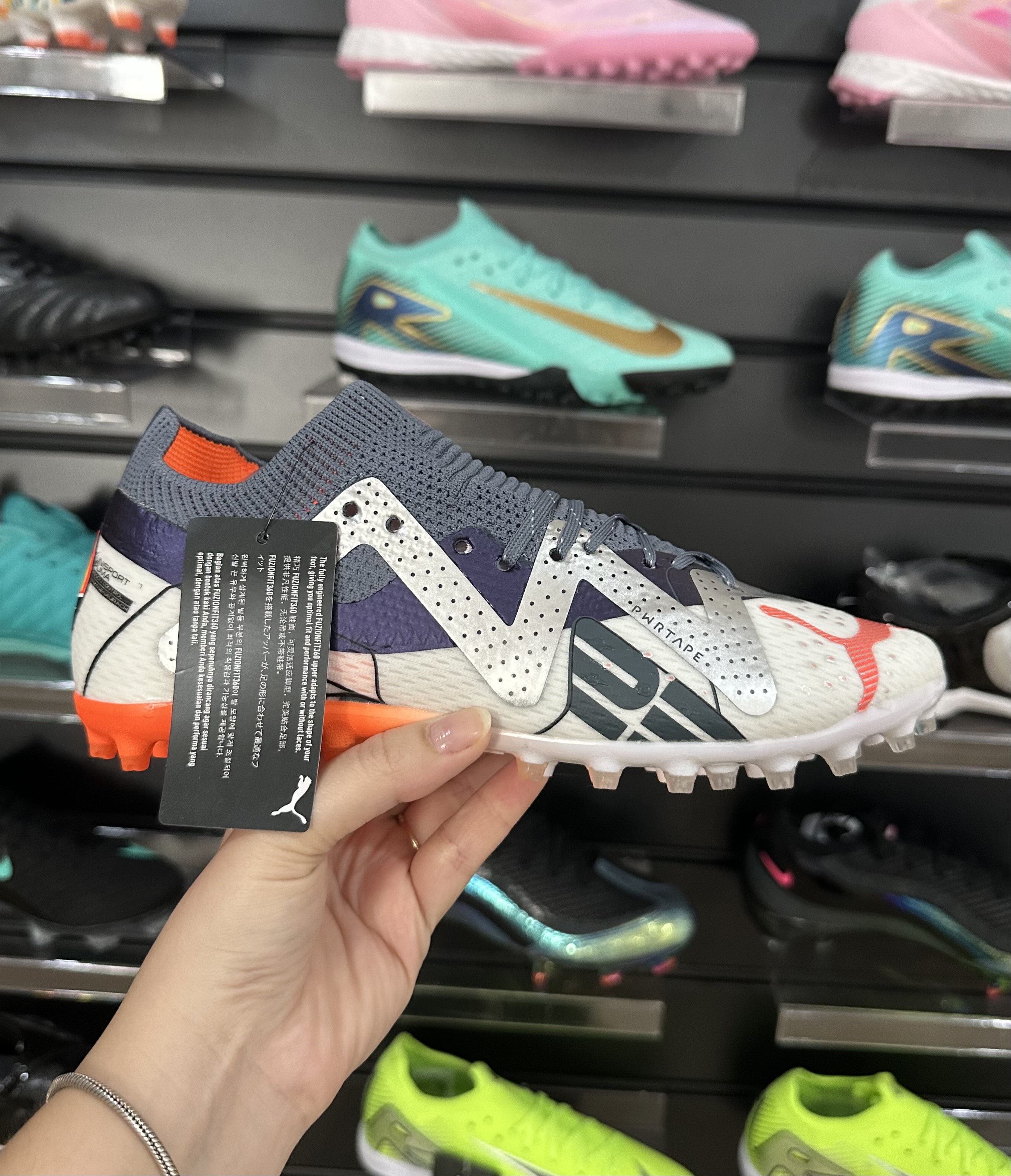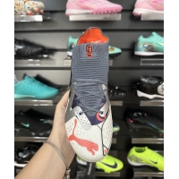 Chuteira Society Puma Future Ultimate MG Branca, Cinza e Laranja - Pronta Entrega