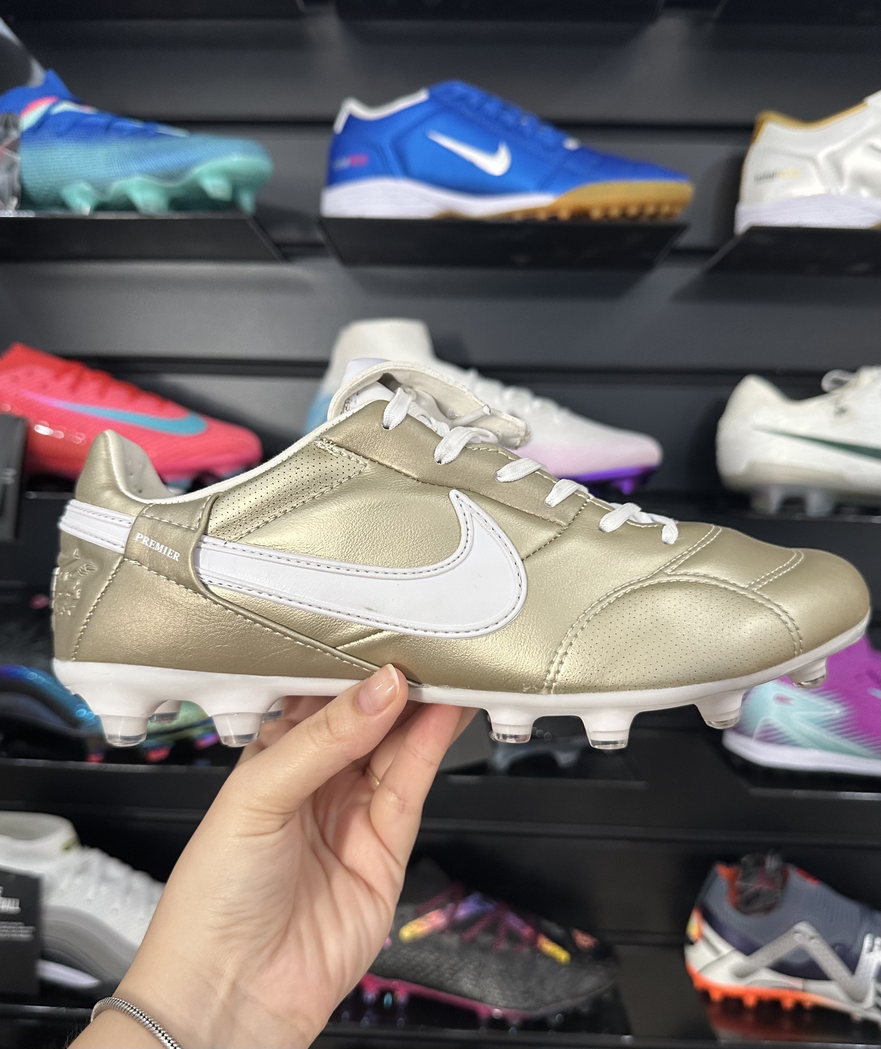 Chuteira Campo Nike Premier 3 FG Dourada e Branca - Pronta Entrega
