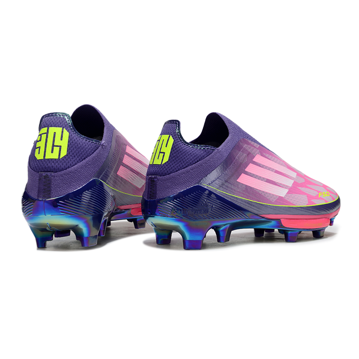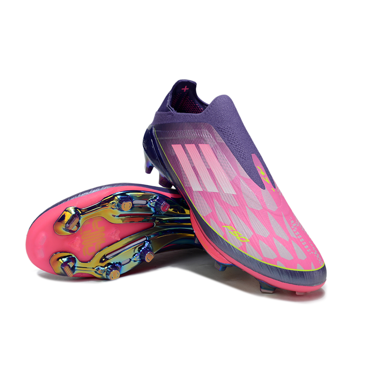 Chuteira Campo Adidas F50+ LL FG Roxo, Rosa e Verde "Lamine Yamal"