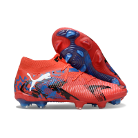 Chuteira Campo Puma Future 8 FG Vermelha e Azul "Playmakers"