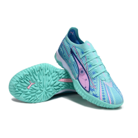 Chuteira Society Puma Ultra 6 Ultimate TF Azul e Rosa "Miami Edition"