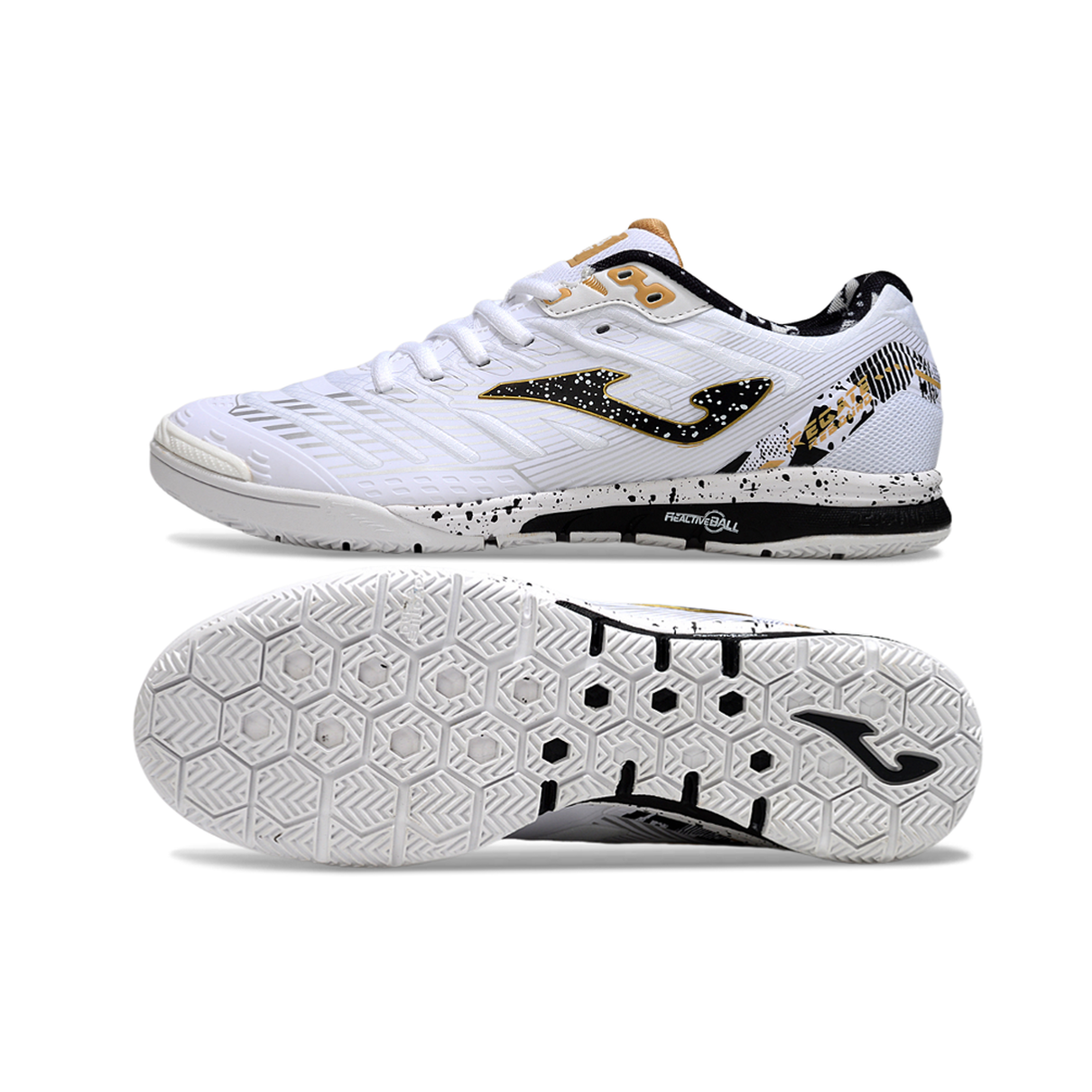 Chuteira Futsal Joma Regate Rebound IC Branca, Preta e Dourada