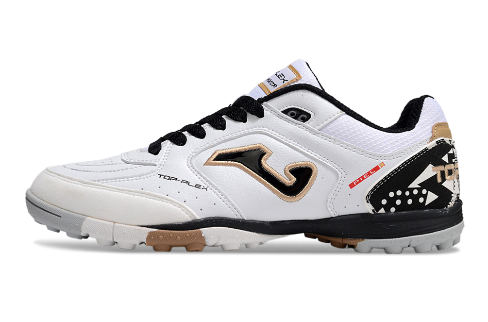 Chuteira Society Joma Top Flex Rebound TF Branca, Preta e Dourada