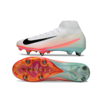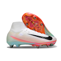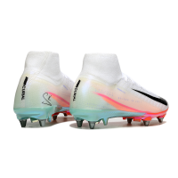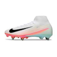 Chuteira Campo Nike Air Zoom Mercurial Superfly 10 Elite Trava Mista Branco, Rosa e Azul