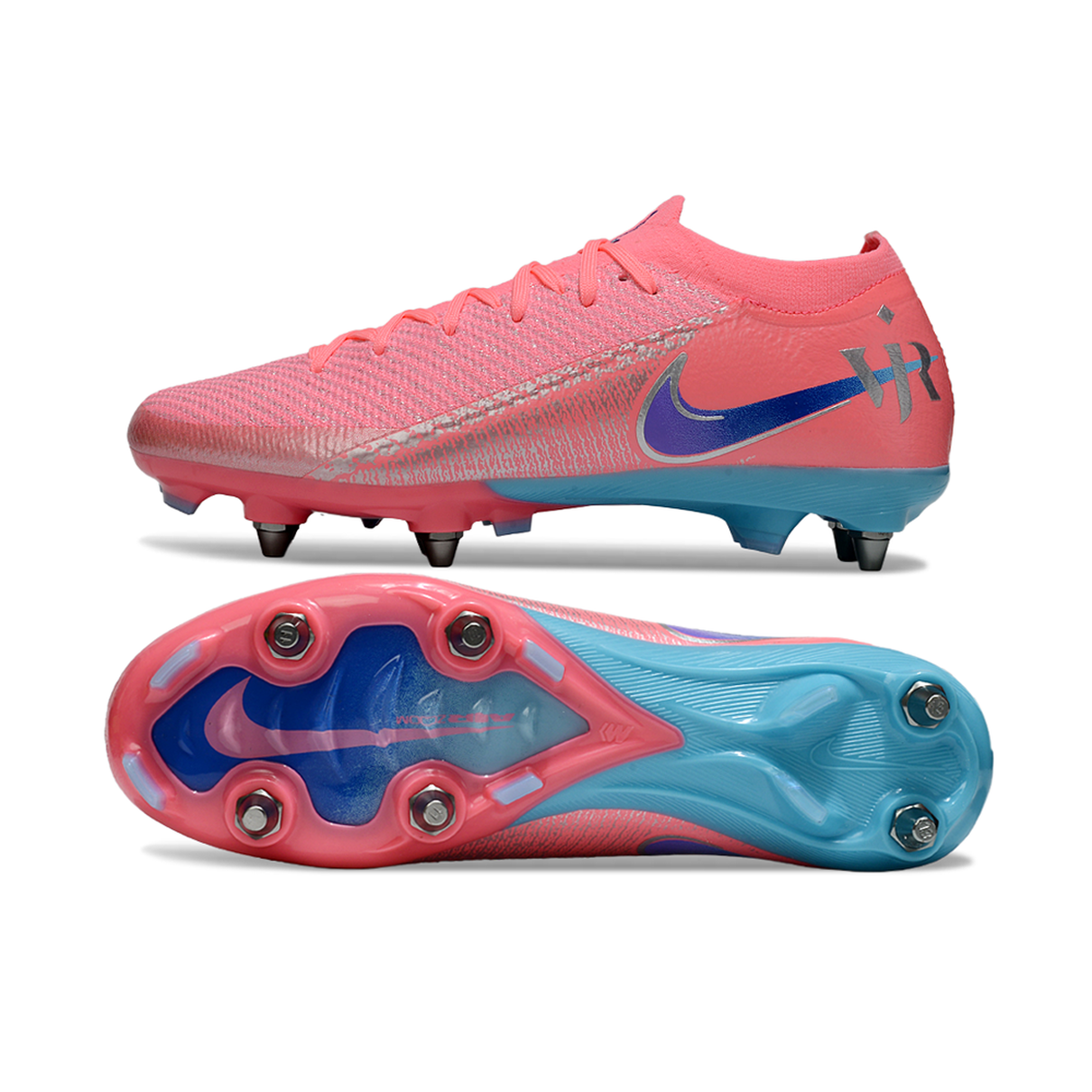 Chuteira Campo Nike Air Zoom Mercurial Vapor 16 Elite Trava Mista Rosa e Azul