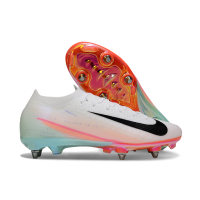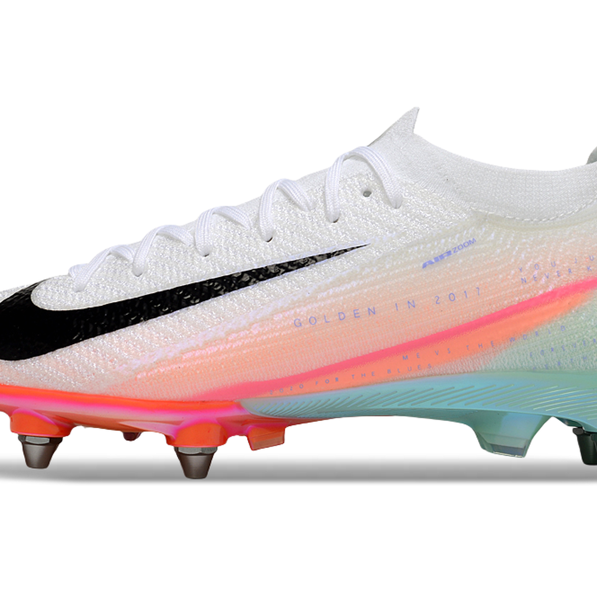 Chuteira Campo Nike Air Zoom Mercurial Vapor 16 Elite Trava Mista Branco, Azul, Rosa e Laranja