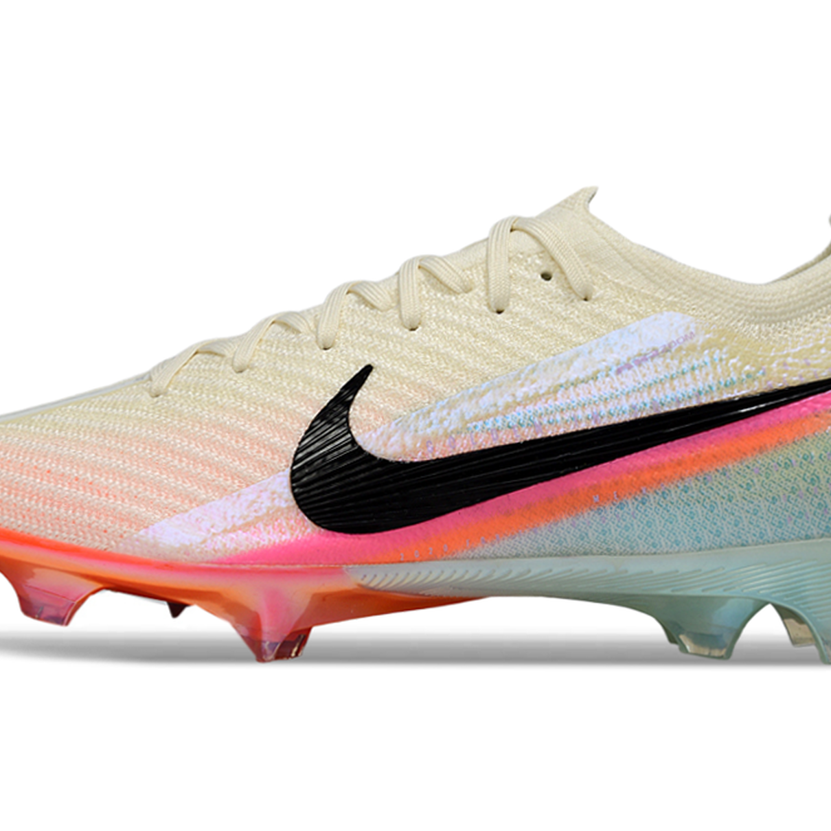 Chuteira Infantil Campo Nike Air Zoom Mercurial Vapor 16 Elite FG Bege, Azul, Laranja e Rosa