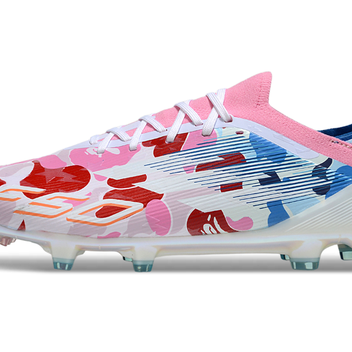 Chuteira Campo Adidas F50 FG Branca, Azul e Colorida "BAPE"