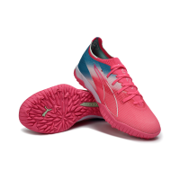 Chuteira Society Puma Ultra 6 Ultimate TF Rosa e Azul "Re-Charge Pack"