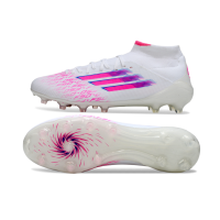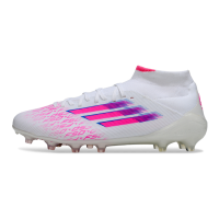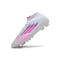 Chuteira Campo Adidas F50 Cano Médio FG Branca e Rosa "Sparkfusion"