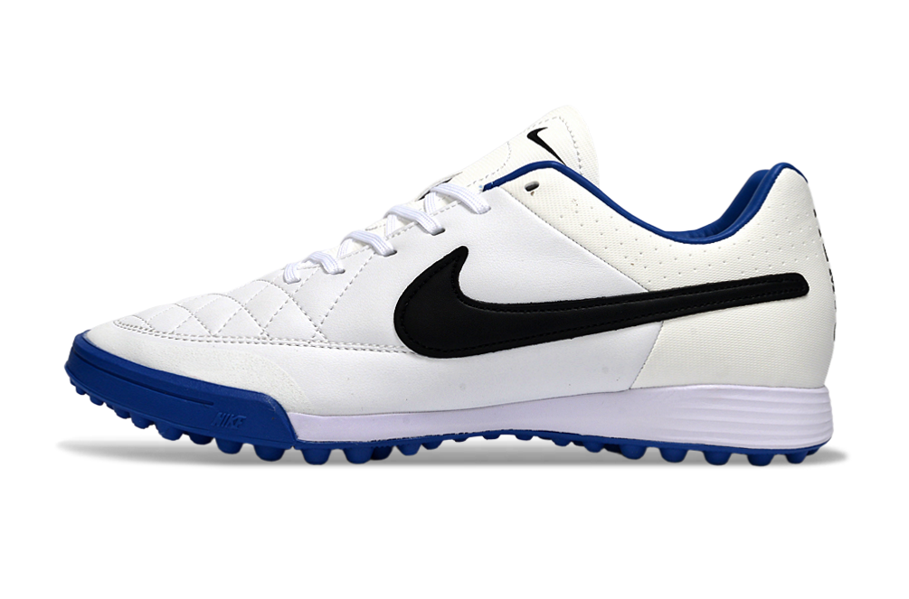 Chuteira Society Nike Retrô Tiempo Legend 4 Elite TF Branca, Preto e Azul