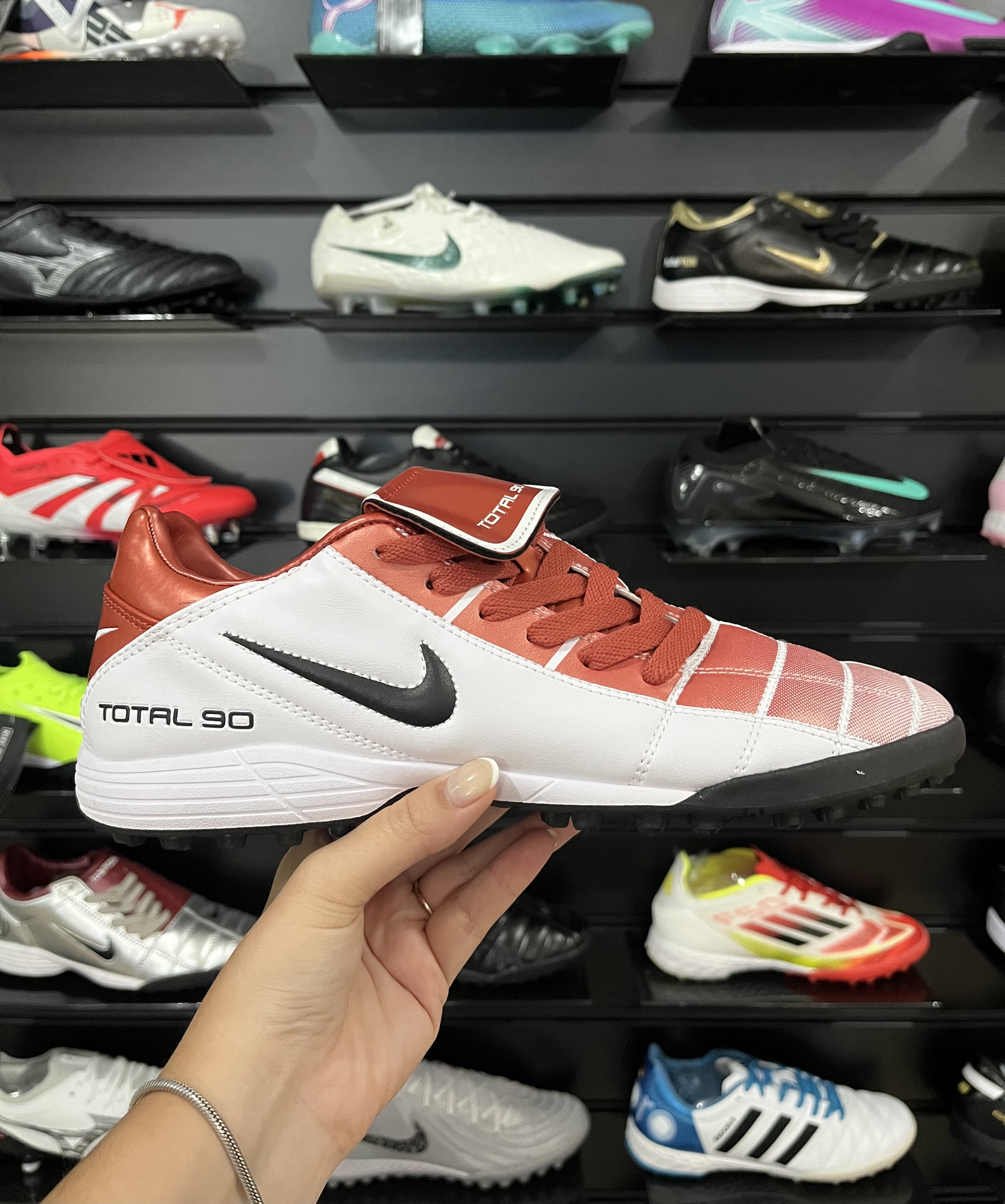 Chuteira Society Nike Total 90 TF Branco e Vermelho - Pronta Entrega