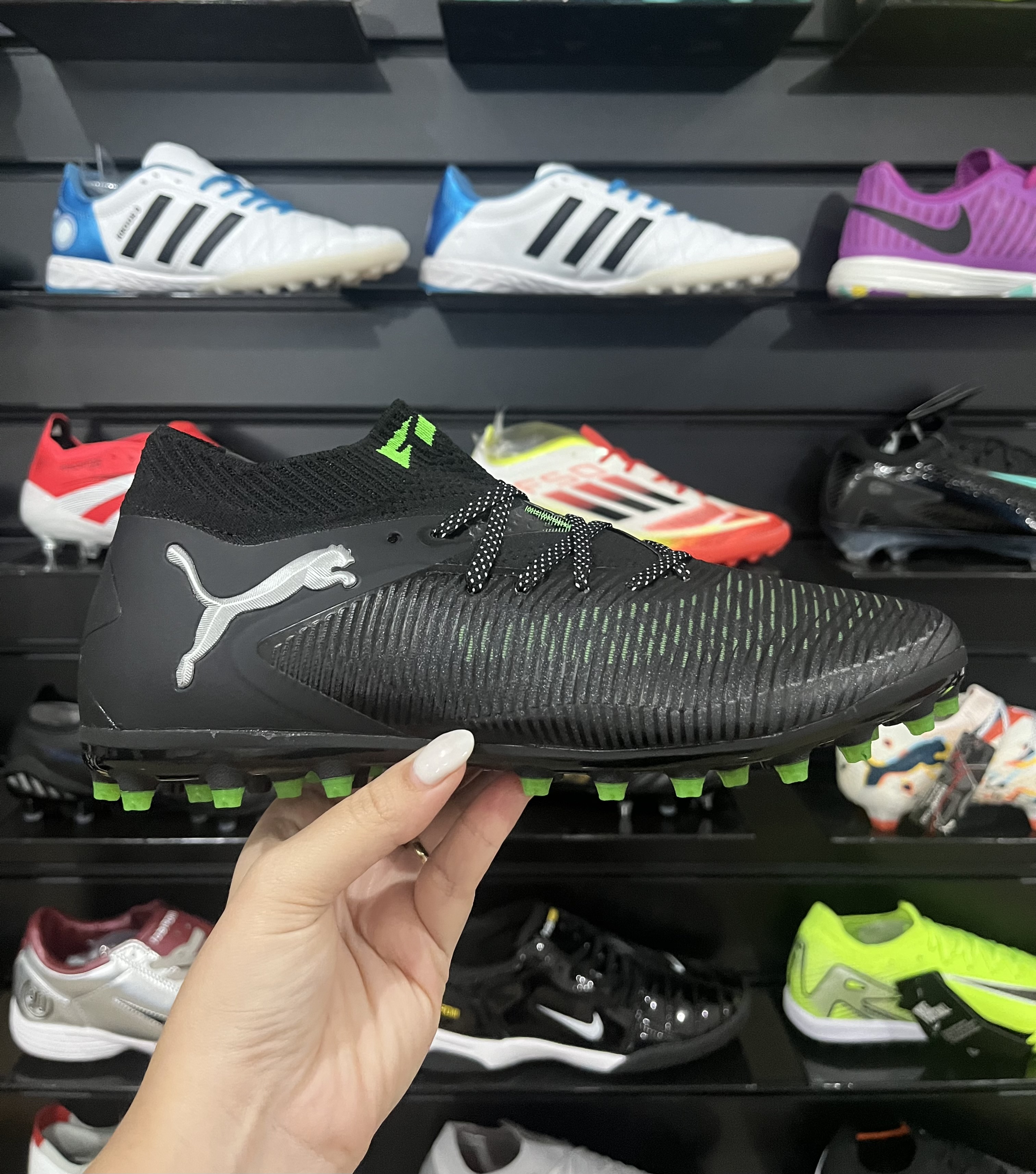 Chuteira Society Puma Future 8 MG Preto e Verde "Eclipse" - Pronta Entrega