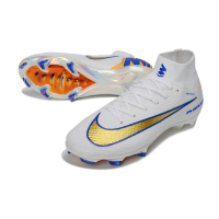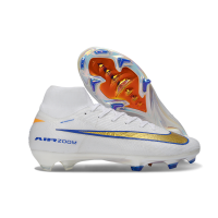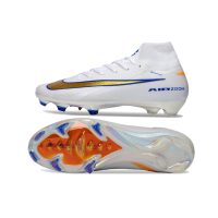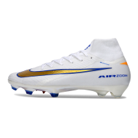 Chuteira Campo Nike Air Zoom Mercurial Superfly 10 Elite FG Branco, Azul e Dourado