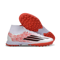 Chuteira Society Adidas F50 Cano Médio TF Branco e Vermelho