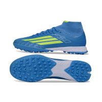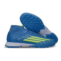 Chuteira Society Adidas F50 Cano Médio TF Azul e Verde