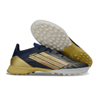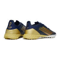 Chuteira Society Adidas F50 TF Azul Marinho e Dourado "Dembélé"