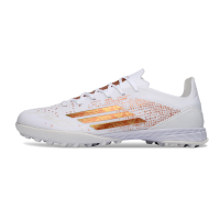 Chuteira Society Adidas F50 TF Branco e Dourado "Salah"