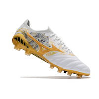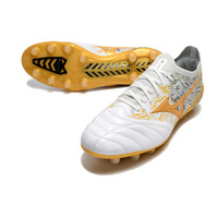 Chuteira Campo Mizuno Morelia Neo 3 FG Branca e Dourada